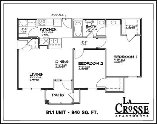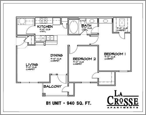 • B1 - 2 BRs 1.25 BA - 940 sq ft