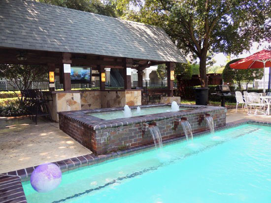 Did you have a long day and need to relax? Make your way to our pool and spa area that has year-round 24-hour access. Fire up the grills in our outdoor kitchen and relax while viewing our large flat screen TV. Also there are grills located at the end of each stairwell.